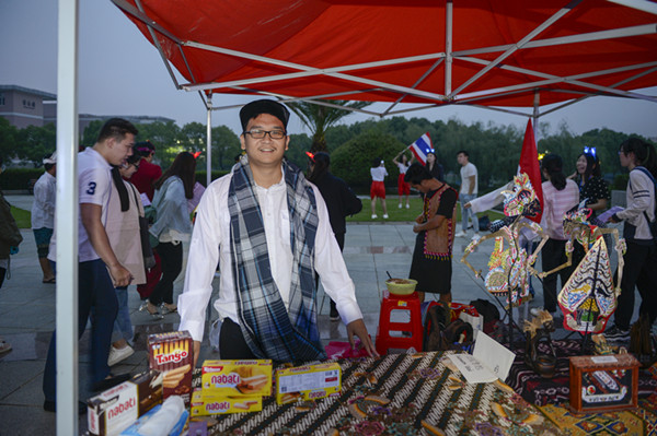 在5月21日的外语文化节开幕式上,51吃瓜app 的同学们邀请了来自英国,美国,韩国,泰国,哈萨克斯坦,俄罗斯,印度尼西亚,越南七个国家的留学生一同参与了开幕式的表演。除了舞台节目之外,留学生们也都有自己的展区。每个展区都设置了代表一个国家的小游戏。英国展区的骰子游戏,法国展区的纸牌游戏,还有越南,泰国展位的现场语言教学。印度尼西亚展区的展品最丰富,他们带来的印尼武术表演更是让现场的观众仿佛身临其境。哈萨克斯坦特色乐器冬不拉弹唱曲风奇幻,越南歌谣或低吟浅唱或高亢热烈。在舞台现场,有神寂动漫社带来的可爱动感的宅舞,还有国标舞协会带来的优雅性感国标舞表演,更有充满异域风情的泰国舞蹈,风格迥异的表演,却是同样的精心准备,同样的饱含热情。参演的一名泰国留学生王诗龄说:“我们很高兴能有这么多中国学生参与我们的游戏,我们也非常开心能机会展示泰国文化。”为了能展示最纯正的泰国传统舞蹈,王诗龄和她的泰国同学们花了好几天亲手裁剪修改了当天的演出服。