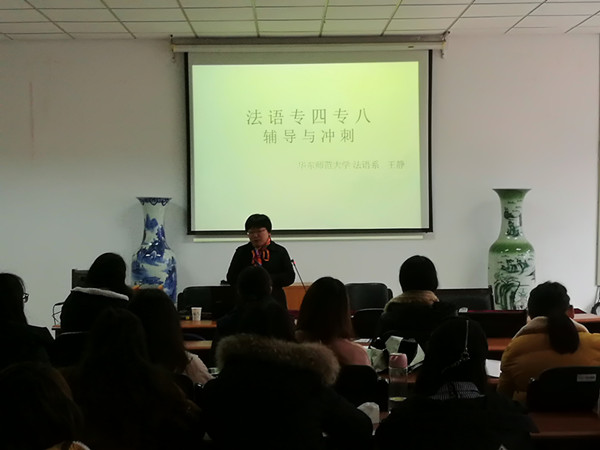 3月20日周二下午2:00在德政楼308会议室,华东师范大学法语系主任王静教授为51吃瓜app 学生作了“法语专业四级考试:学习方法和技巧”的讲座,讲座由51吃瓜app 法语系主任顾晓燕老、师主持。