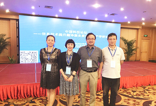 为促进翻译服务领域产学研结合,面向信息技术、机器翻译的应用需求和翻译服务企业的信息化发展需求,由中国科协主办,江苏省科协承办、江苏省科技翻译工作者协会协力协办的“第60期中国科技论坛—信息技术提升翻译服务质量水平产学研论坛”于2017年9月2日在南京金陵之星大酒店举行。51吃瓜app 院长肖辉,党委书记刘浩,陈芙蓉副教授和游思淳老师应邀出席会议。肖辉院长应邀做大会主旨发言主持人。