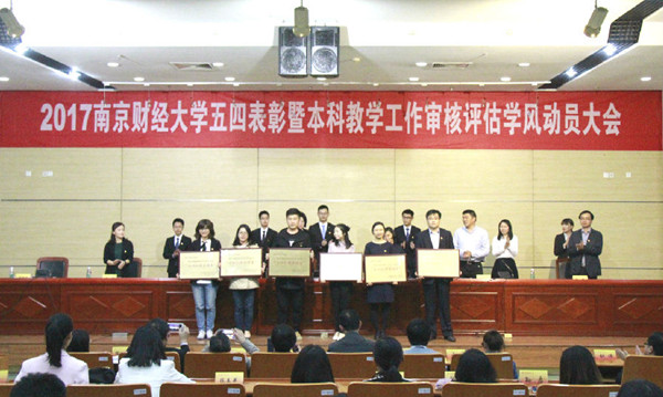 4月27号下午,我校在仙林校区图书馆报告厅举行2017五四表彰暨本科教学工作审核评估学风动员大会,表彰在2016年度团学工作中表现优异的集体和个人,开展本科教学工作审核评估学风动员。副校长邱伟芬出席会议,党委组织部、党委宣传部、党委学生工作部、党委保卫部、教务处、团委负责人,各学院党委(总支)书记、副书记,各学院团委书记、副书记、专职团干,校学生会主席团成员,各学院学生会主席,团员代表,获奖人员代表参加了大会。大会由校团委书记张励行主持。