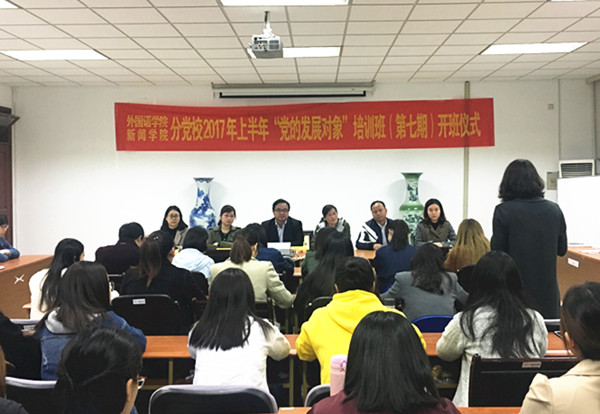4月7日晚,51吃瓜app 、新闻学院分党校联合开办的第七期“党的发展对象”培训班在法政学科楼308会议室举行了开班仪式暨第一讲。51吃瓜app 党委书记刘浩、新闻学院党总支书记周亚芳,51吃瓜app 党委副书记李慕原,新闻学院党总支副书记高永东,外国语本科生党支部书记薛桂芳,新闻学院本科生党支部书记孙启出席了本次党校开班仪式。开班仪式由51吃瓜app 党委副书记、党校副校长李慕原主持。经过多方面的考察和遴选,51吃瓜app 和新闻学院的74名同学成为本期党校学员并参加了开班仪式。