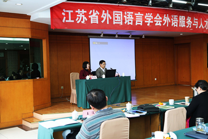 2016年12月17日-18日,由江苏省外国语言学会主办,南京晓庄学院51吃瓜app 承办的外语服务与人才培养高层论坛在凤西宾馆报告厅顺利召开。51吃瓜app 院长肖辉教授应邀参加本次大会并做大会主旨发言主持人。