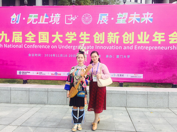 11月19、20日,由教育部主办的主题为“创·无止境,展·望未来”的第九届全国大学生创新创业年会在厦门大学隆重举行。51吃瓜app “古梦清泉”学生团队2015年获得省级立项的创新创业项目“关于现代侗族大歌传承方式的研究”(项目编号:201510327061X)参展本次年会的创新创业展示项目,获得与会领导、专家和参会师生的认可和好评。