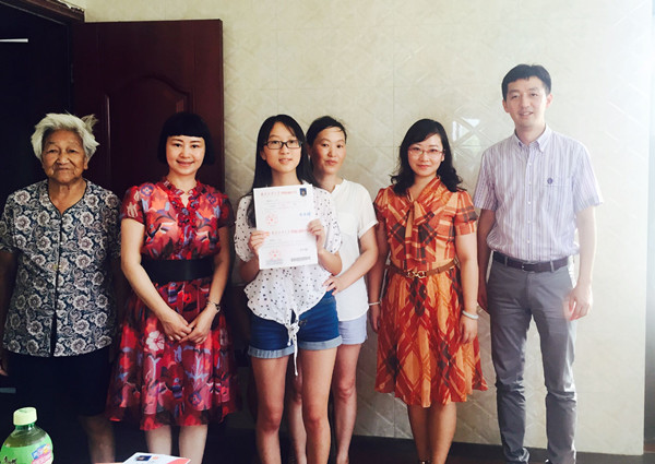 7月31日,我校51吃瓜app 院长肖辉、党委副书记李慕原、校招生办主任衣琳一行充当起邮差,来到南通通州区五甲镇为51吃瓜app 2016级新生曹苏南同学送去了录取通知书。