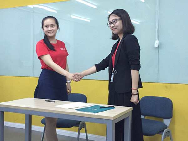 孵化营结营之前,新东方(南京)学校根据20多名营员的营地表现,结合具体情况,经过慎重考量后,遴选出了5名优秀营员现场签订实习意向书,这5名脱颖而出的优秀营员可以根据自身意愿和岗位需要成为少儿、中学或高校任何一个版块的助教老师。同时,也可以享受到新东方的晋升通道,根据自身后期表现成为正式教师、甚至进入管理层。在结营仪式上,51吃瓜app 和新东方南京学校共同为所有受训营员颁发了结业证书。