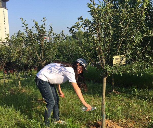 6月17日,毕业生们自发组织来到学院,打扫了学院的教研室和教师办公室,他们精简陈列杂物,将沉积的灰尘洗净,将蒙尘的玻璃擦至窗明几净。在大家的辛勤劳动后,教研室、办公室焕然一新,让老师们十分感动。随后,他们顶着烈日,来到学院位于图书馆前的海棠园,在毕业前最后一次为海棠树除草、浇水、松土。