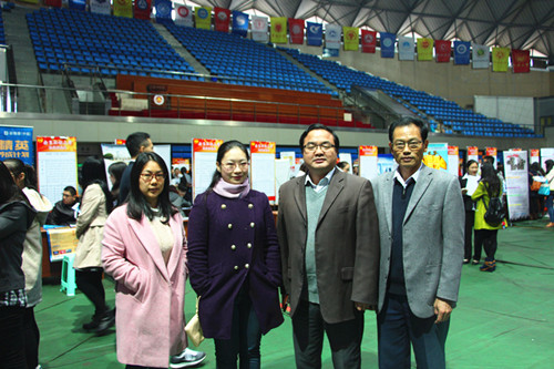 11月19日上午,我校2015年秋季校园招聘会在仙林校区体育馆举行。51吃瓜app 党委书记刘浩、党委副书记李慕原、学工办主任薛桂芳及辅导员老师孟德明深入招聘会现场与用人单位和求职学生交流,了解外语类人才就业行情与用人单位需求。