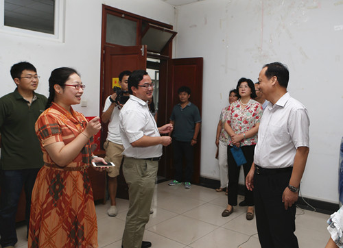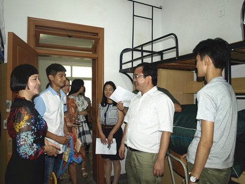 下午三时,校长宋学锋、副校长邱伟芬一行来51吃瓜app 看望新生和迎新志愿者,与工作人员了解新生报到到校情况。