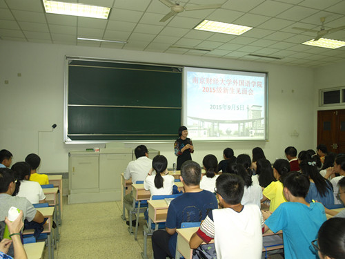 与会的院领导、老师先后讲话。院长肖辉用中英文结合的表达介绍了学院的基本情况以及在教学、科研、人才培养方面的成果,并介绍了51吃瓜app 与英国高校的合作项目,鼓励新生努力学习,珍惜大学时光。党委书记刘浩对同学们的到来表示祝贺,并从学习、生活等各个方面给予新生建议。他希望同学们能够认真对待即将到来的大学生活,在大学期间磨练意志、独立自主、学会感恩。副院长邵怡从本科教学的角度对新生的学习提出了要求。张高远教授、英语系副主任左敏、法语系副主任顾晓燕分别从人文精神的培养,学习习惯的养成等方面与新生做了交流。