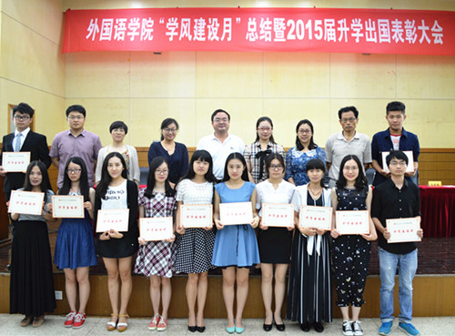 副院长邵怡宣读对李成陈等15名同学的升学出国奖表彰决定。院相关领导为获奖同学颁发奖状。