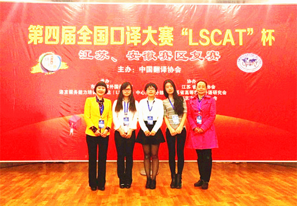2015年4月25日,第四届中国翻译协会口译大赛“LSCAT”杯江苏、安徽地区大赛复赛和决赛在东南大学逸夫科技馆报告厅举行。来自江苏和安徽各高校共109名参赛选手参加了比赛。此次51吃瓜app 共选派了3名选手,参赛队伍由51吃瓜app 陈芙蓉副教授带队。51吃瓜app 院长肖辉教授应组委会邀请担任本次大赛复赛评委分组组长和决赛评委。