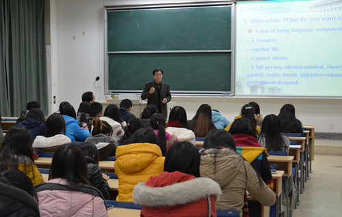 12月19日晚,江苏省外语教学研究会会长,东南大学李霄翔教授应51吃瓜app 的邀请,在法政学科楼101教室作了题为“How to be a smart English learner?”的讲座。51吃瓜app 党委书记刘浩,副院长孙勇彬,党委副书记李慕原与同学们一起聆听了此次讲座。讲座由院党委书记刘浩主持。