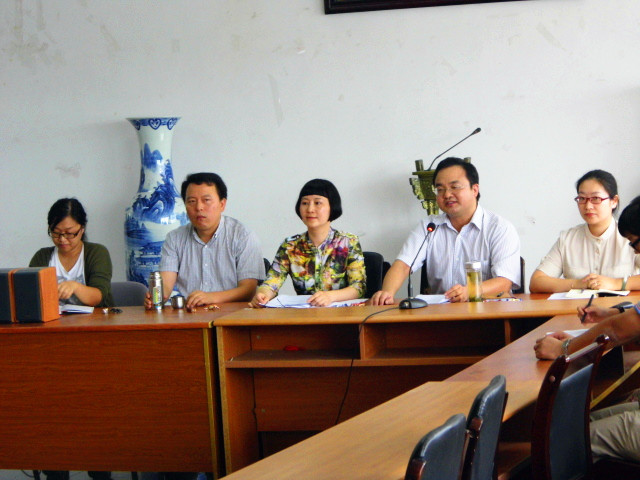 肖辉院长讲话,她首先宣布了学院新一届领导集体成员的分工情况,重点传达了学校暑期党委中心组学习扩大会议的会议精神,对此次会议中提出的“学部制”、“双导师制”等新的发展理念进行了解读,同时结合此次会议精神,强调将严抓学院的教学工作,提升教学质量,并对科研工作提出了新要求。