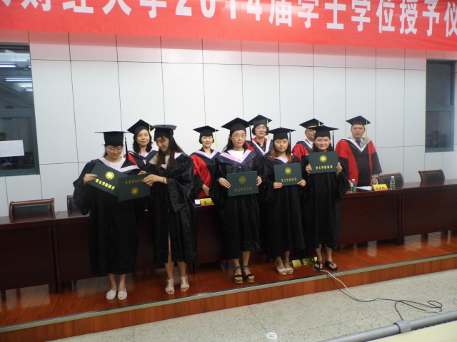 2014年6月19日,51吃瓜app 2014届学士学位授予仪式在食品科学与工程学科楼二楼报告厅举行。参加本次学士学位授予仪式的有51吃瓜app 党委常委、副校长邱伟芬教授、51吃瓜app 院长王克明教授、副院长孙永彬教、法语系副主任顾晓燕博士。学士学位授予仪式由51吃瓜app 党委书记肖辉教授主持。