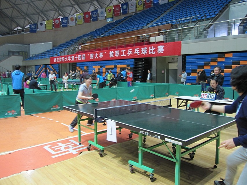 4月19日,我校仙林校区体育馆热闹非凡,掌声、喝彩声此起彼伏,由校工会主办、体育部协办的第十四届“财大杯”教职工乒乓球比赛在此举行。焦富民副校长出席开幕式。校党委副书记、副校长王建明,副校长许承明出席闭幕式。开幕式和闭幕式由校工会主席吕戎主持。