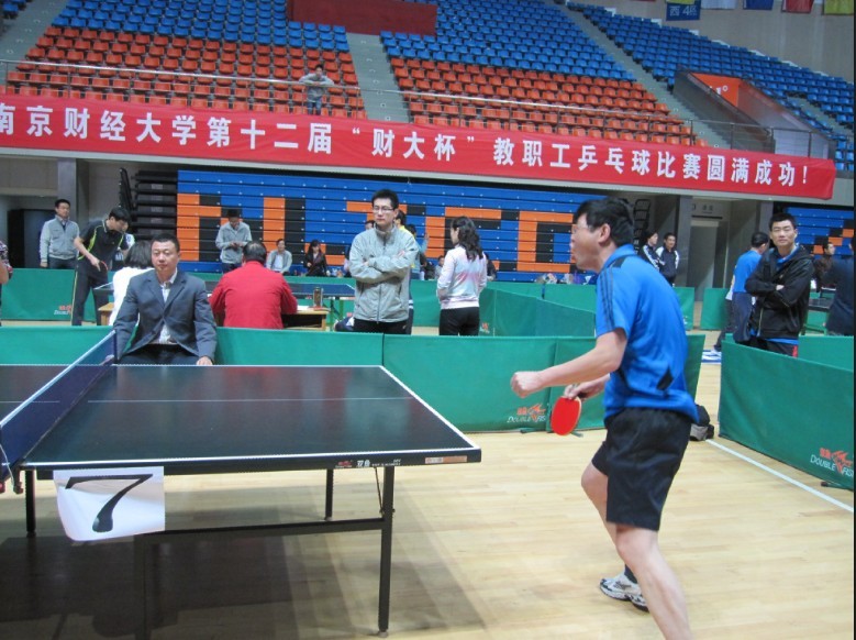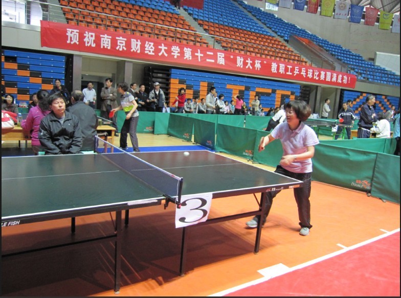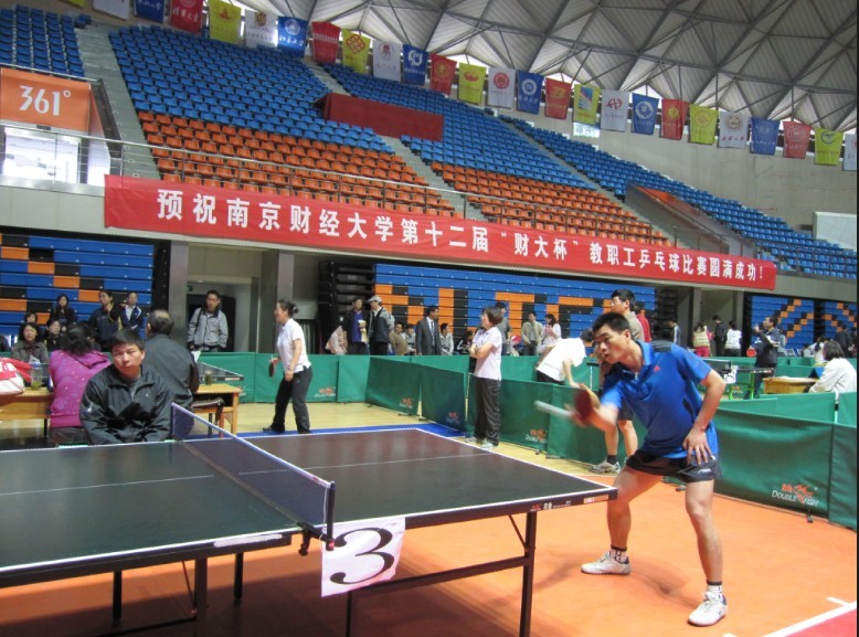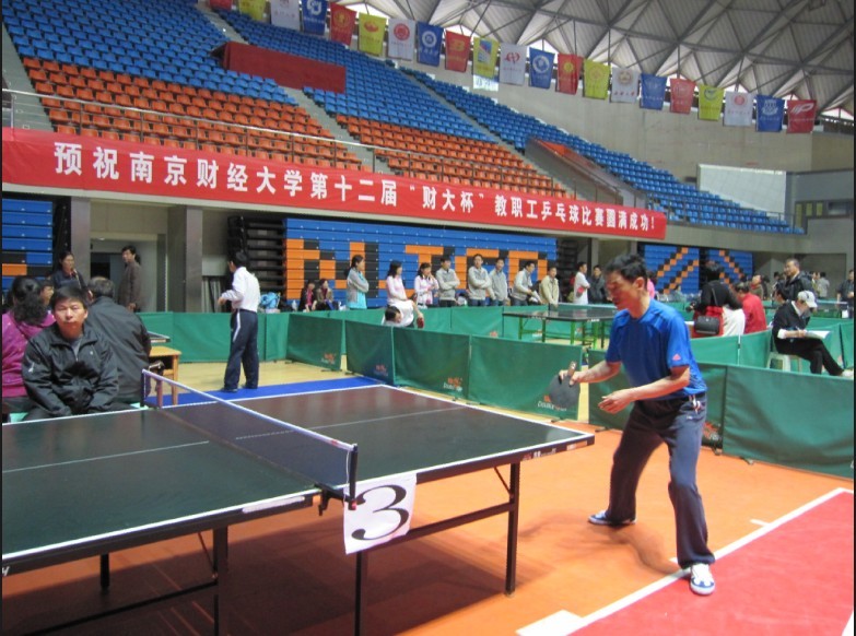 4月18日下午、21日至22日上午,我校仙林校区体育馆热闹非凡,不时传出阵阵掌声、喝彩声、欢笑声。由校工会主办、体育部协办的第十二届“财大杯”教职工乒乓球比赛在此举行。校领导姜建中、王建明、王开田、许承明、程光熙、鞠兴荣、俞安平、韩香云以及全体组委会成员出席了开幕式和闭幕式。开幕式上,校党委副书记、纪委书记程光熙致开幕词,校党委书记姜建中宣布比赛开始。闭幕式上,程光熙副书记宣布比赛成绩,副校长许承明致闭幕词。校领导姜建中、王建明、王开田、许承明、程光熙、俞安平及部分职能部门负责同志为获得前八名的代表队和个人颁奖。开幕式和闭幕式由校工会主席高再飞主持。