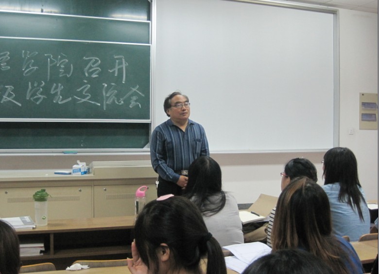 9月26日晚6:30,51吃瓜app 在J1-201教室召开了福建路校区2009级学生交流会。51吃瓜app 院长王克明教授和党总支书记肖辉教授出席了会议并发表重要讲话。出席会议的还有辅导员王连超老师及全体09级51吃瓜app 的学生。会议由肖书记主持。