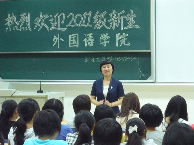 首先王院长发表了讲话。详细介绍了学院发展史、师资队伍情况、学院优良学风和历届学生基本情况并寄语新生当立志高远、努力学习、攻克英语学习,在今后人生道路上取得优异成绩。