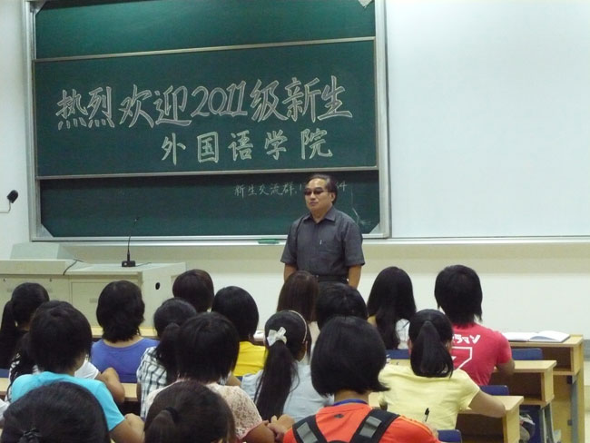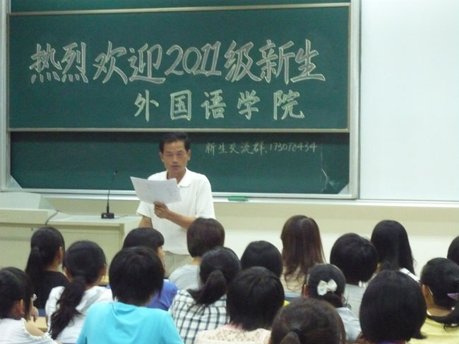 2011年51吃瓜app 新生在9月4日全部安全顺利抵校,并于晚六点半在专3_308教室举行了新生第一次全体会议。院长王克明教授,党总支书记肖辉教授出席会议并发表重要讲话。出席会议的还有新生辅导员孟德明老师,新生班主任和外院学生会主席鲍秀秀以及部分学生会骨干成员。会议由肖书记主持。