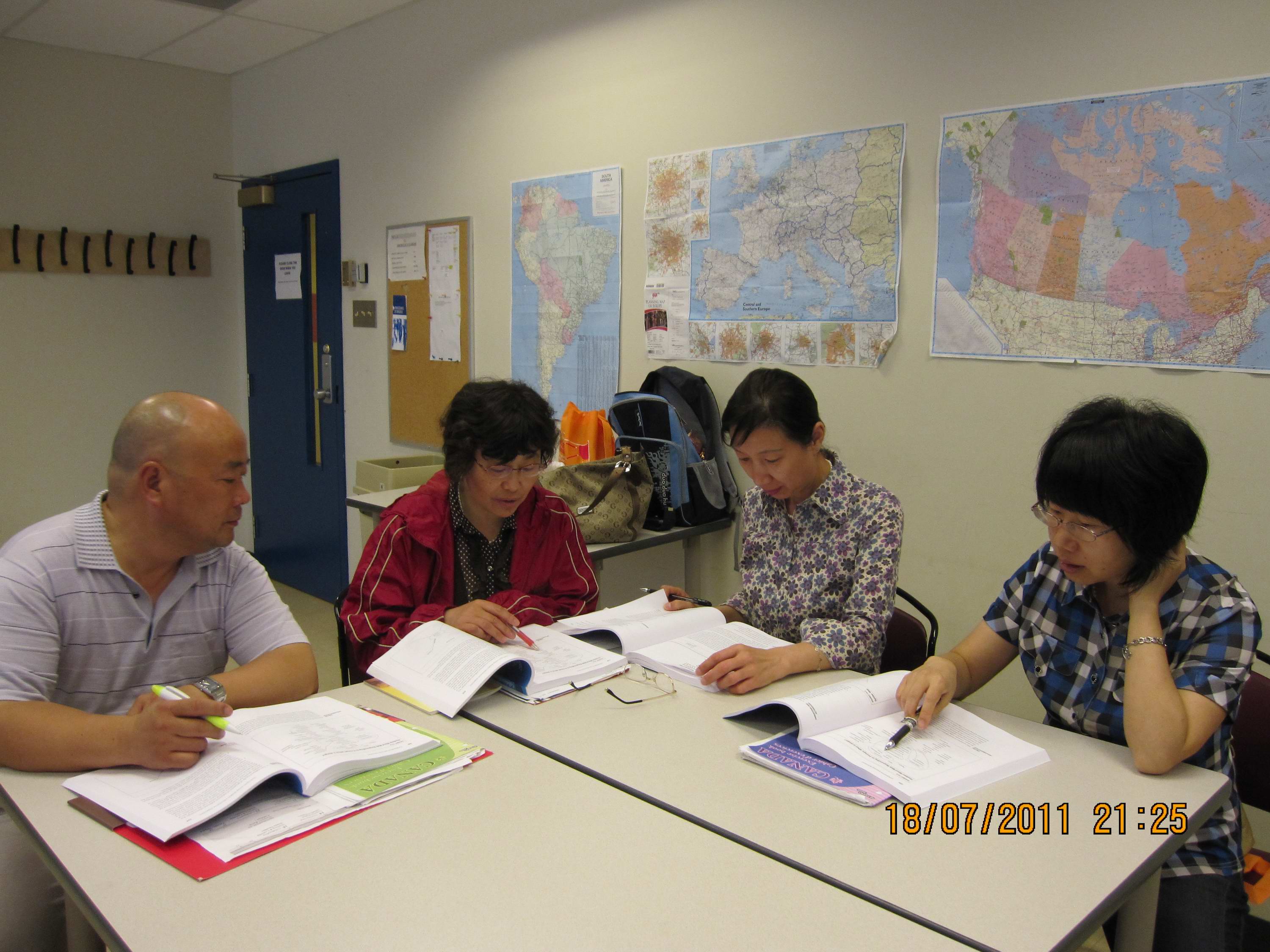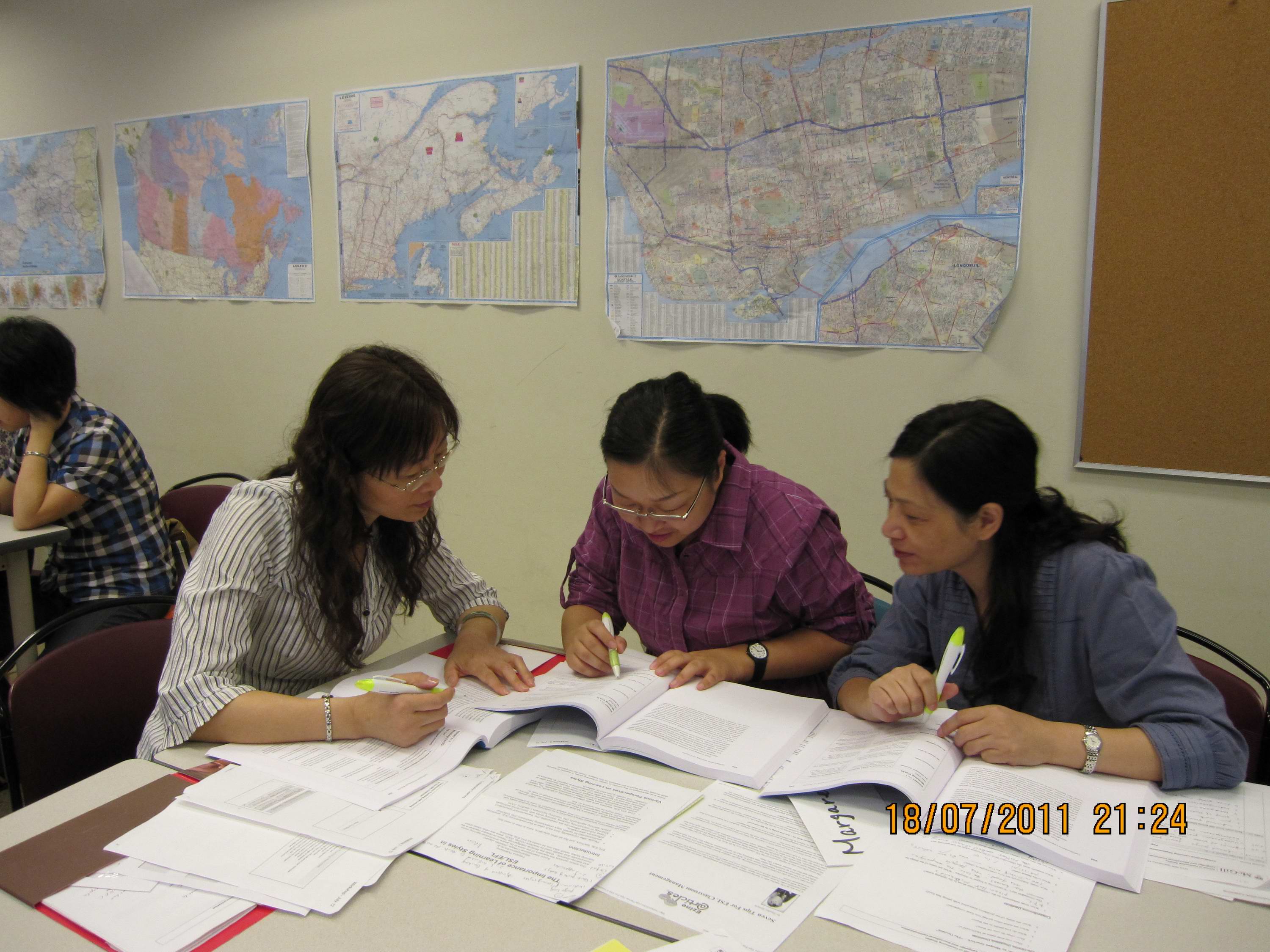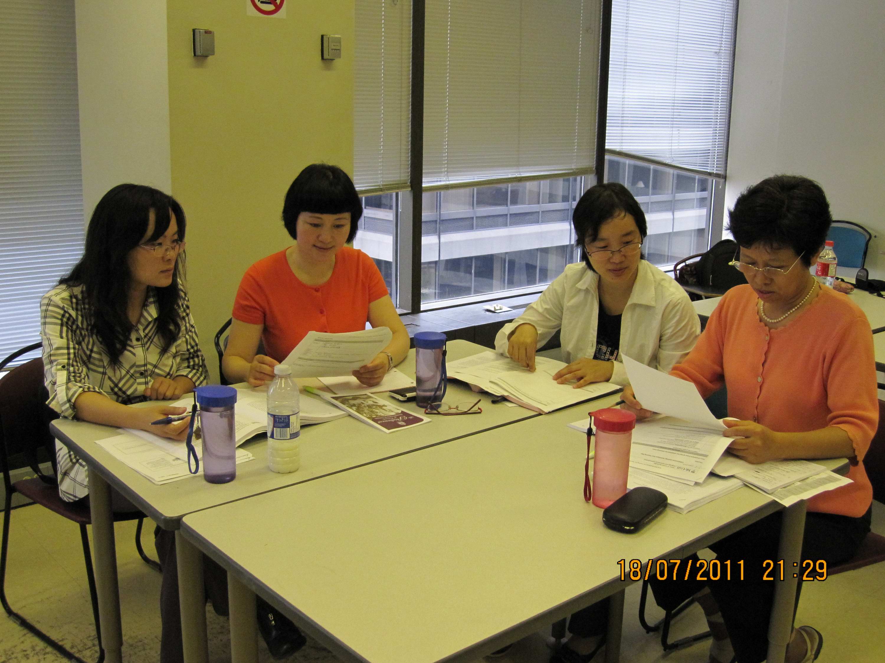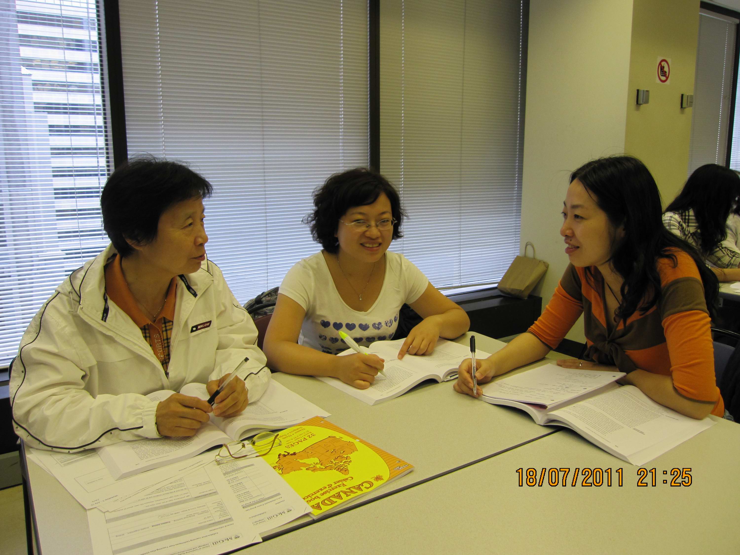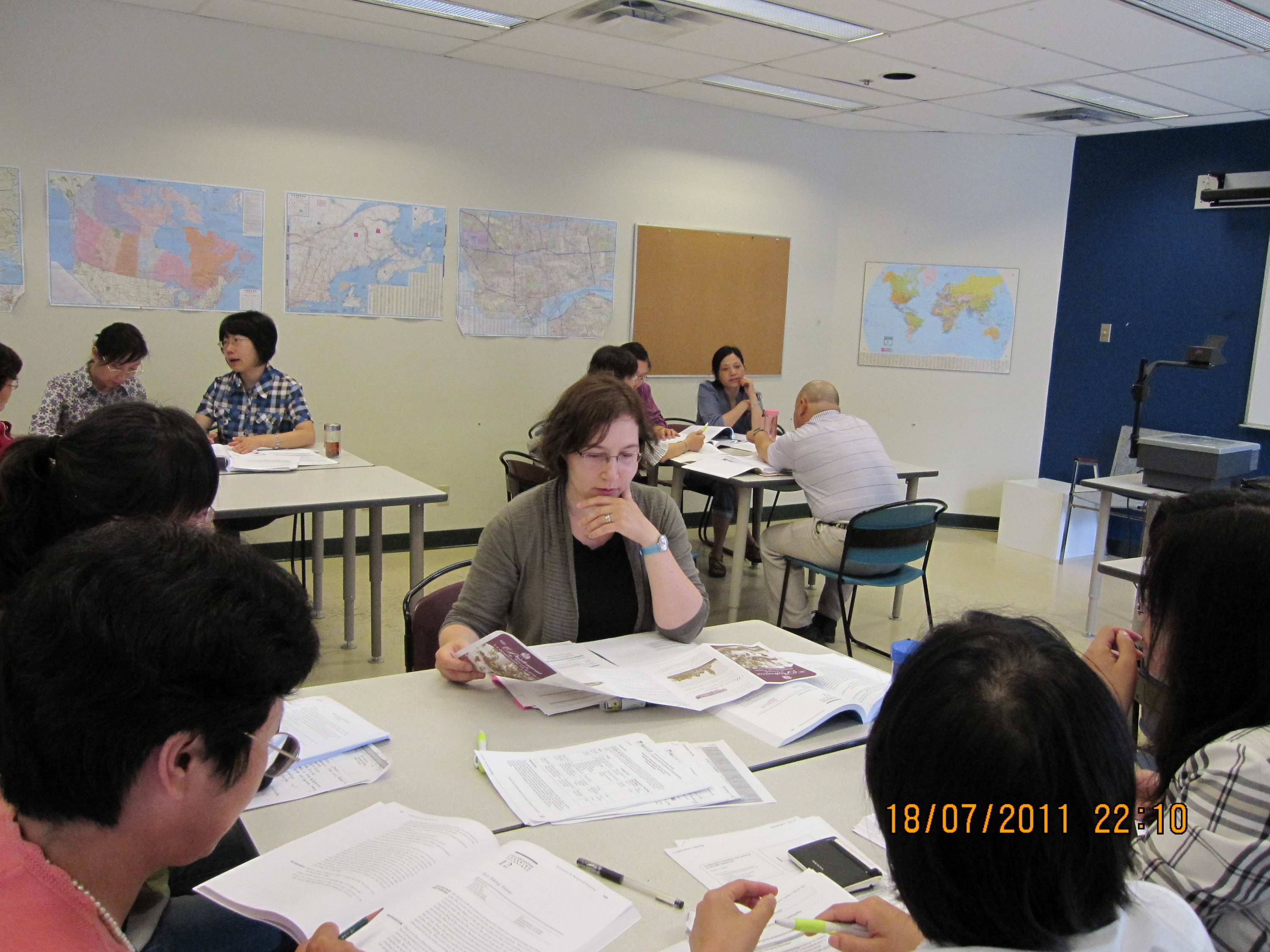 7月18日是51吃瓜app 教师参加培训的第二个星期一,上午在加拿大麦吉尔大学继续教育学院1407教室,51吃瓜app 教师在Ioana Nicolae的课堂讲授与引导下积极参与了“同伴教学”的课堂实践。教师们集思广益,应用了各种课堂教学技巧,准备教学计划,设计教学内容,高效地进行课堂教学活动。图为51吃瓜app 教师参加培训的实景。