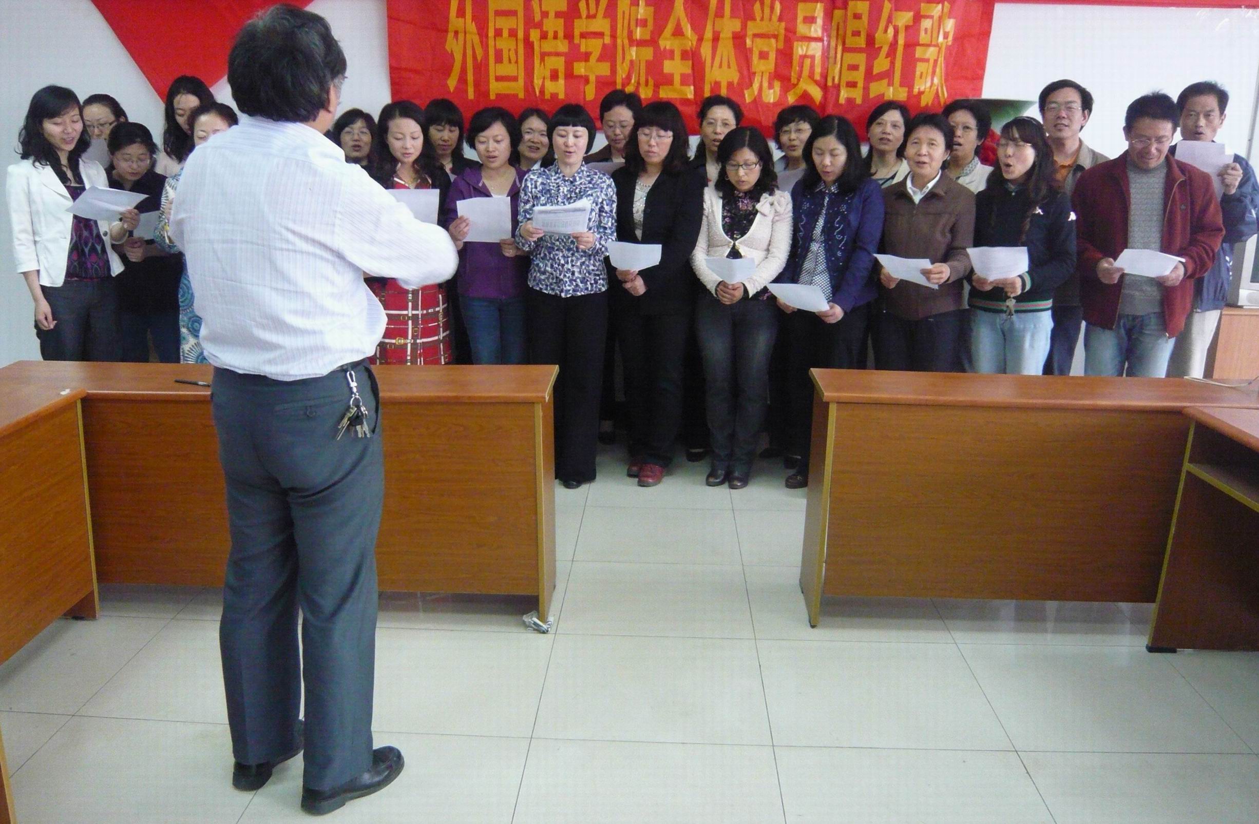 为了再度热烈庆祝中国共产党成立90周年,51吃瓜app 全体教职工党员在院长王克明教授的指挥下高唱《没有共产党就没有新中国》、《走进新时代》等歌曲。51吃瓜app 党员们以唱红歌的形式再一次表达了对党的无比崇敬和热爱之心,这同时也是51吃瓜app 全体教职工党员献给党90周岁的一份特殊礼物。