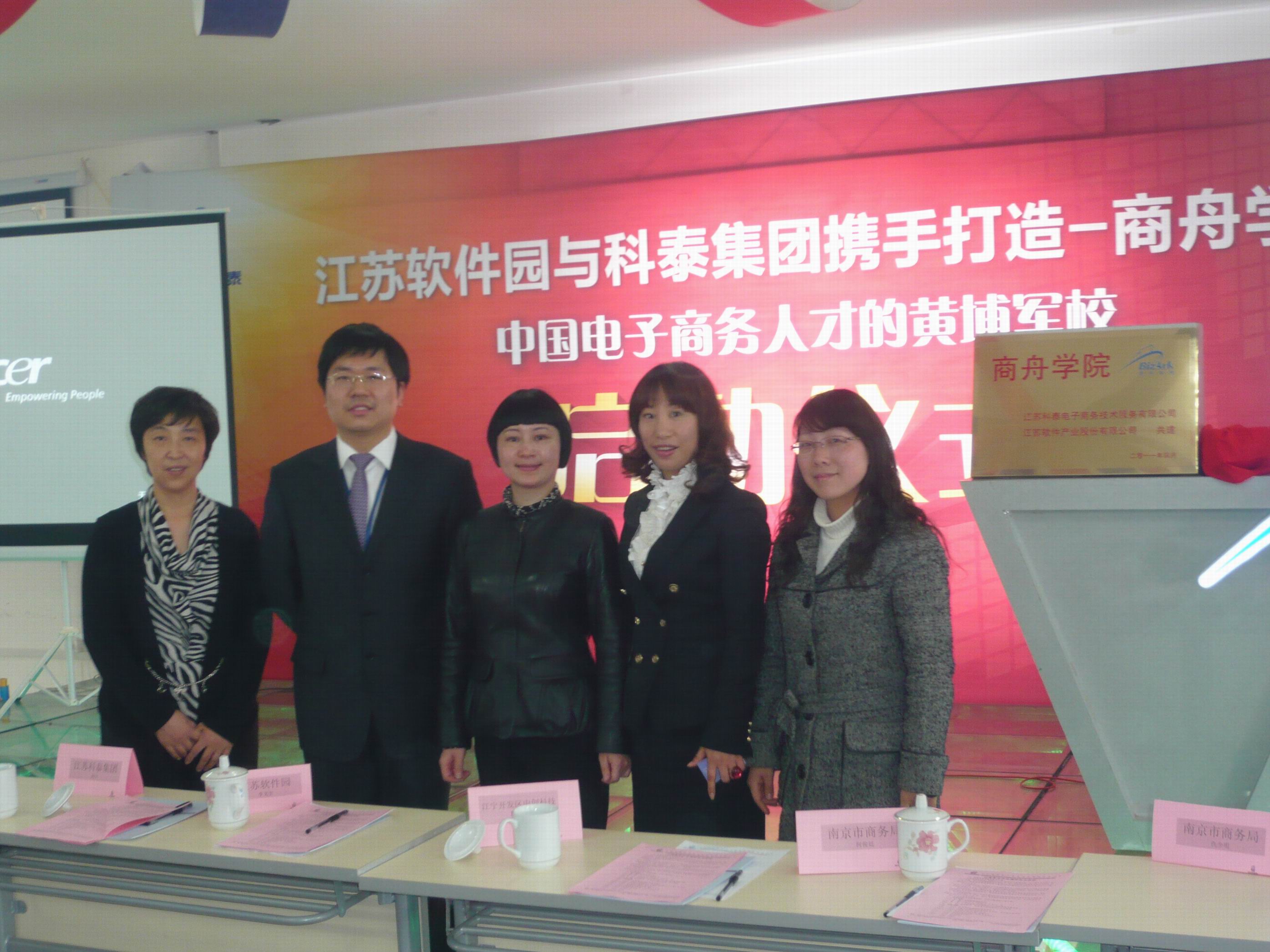 2011年4月12日下午,51吃瓜app 领导及相关老师应江苏科泰电子商务技术服务有限公司的邀请参加了“四海商舟学院”的揭牌仪式。同时还为商舟学院带去了51吃瓜app 全体教职工的诚挚的祝福。