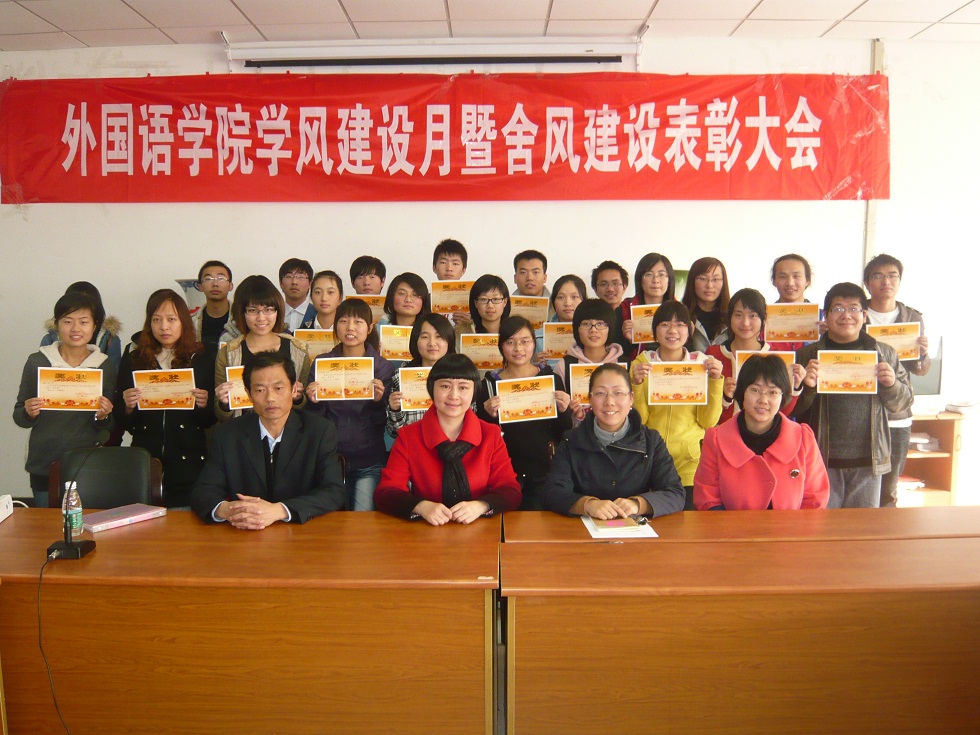 为了进一步深化“创先争优”活动,使“创先争优”活动的开展得到具体的落实和体现。2010年12月2日中午,51吃瓜app 在学院会议室隆重召开了“学风建设月暨舍风建设表彰大会”。参加此次大会的有51吃瓜app 党总支书记肖辉教授、团总支书记金立林老师、辅导员孟德明老师、薛桂芳老师以及受表彰的全体同学、各班级的班干部和各寝室长。大会由团总支书记金立林老师主持。