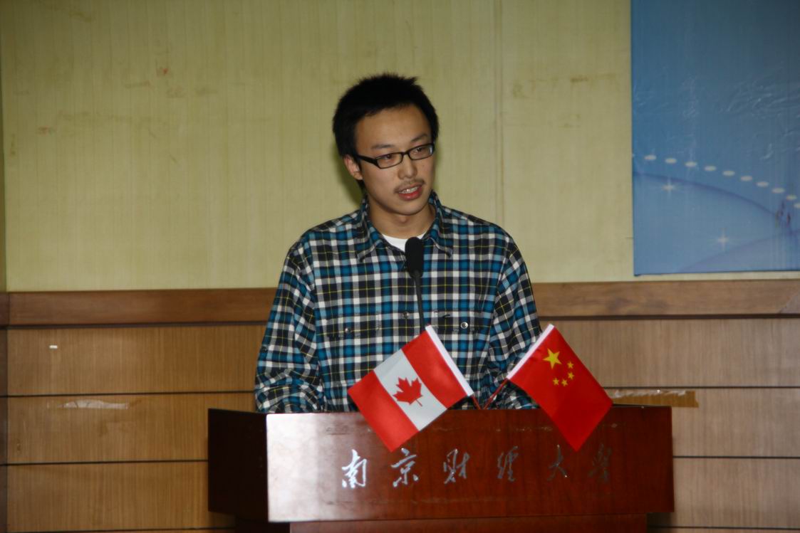 10月21日晚上七点,中加关系校园英语演讲赛决赛在专二楼学术报告厅准时举行。比赛现场同学们手挥的中加两国国旗给比赛增添了和谐、友谊的气氛。