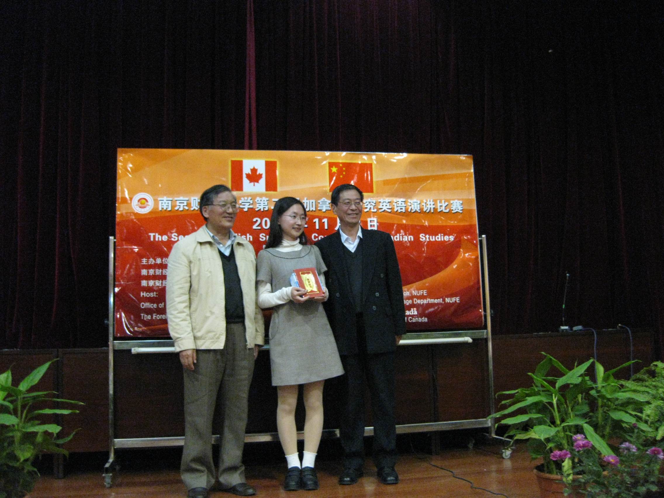 来自我校各个专业的十位同学,在10月29日的初赛中过关斩将,成功晋级决赛,并展开了激烈地角逐。决赛由已备演讲、回答问题和即性演讲三个部分组成。整个比赛过程激烈有序,每位参赛选手都充分地展示了自己的风采,将英语水平和对加拿大的理解结合起来,给广大的领导、专家、嘉宾、学者和师生留下了深刻的印象,比赛现场的气氛紧张而热烈。最后来自外语系的肖文同学获得了一等奖。冯建文会长、郭继德前会长为肖文颁发了一等奖;副会长杨令侠教授、前副会长王昺教授为二等奖颁奖;外籍专家和邱伟芬处长为三等奖颁奖。