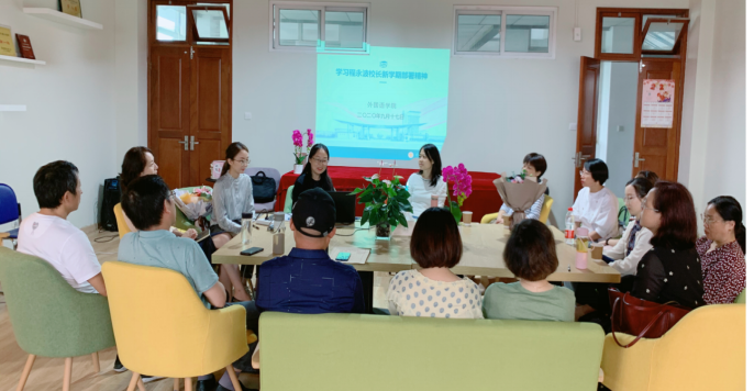 会议开始首先学习程永波校长新学期的部署精神。程校长从深化教育教学改革、创新科研体制机制、推进人才培养一体化等七个方面对学校工作进行详细部署,并提出本学期的发展任务要把“博士授权单位申报”作为重中之重,实施“十四五”规划编制的发展大计,要推动高水平大学建设,打造高端创新团队,培养拔尖创新人才。李骏书记和大家一起重点分析了高水平大学建设的五项指标,强调我校目前冲刺博士授予单位的迫切性和必要性,指出学院做好外语教学、打牢基础的重要性,希望学院也切实提升科研能力,做优做强特色教学,为我校实现特色鲜明的高水平大学贡献力量。