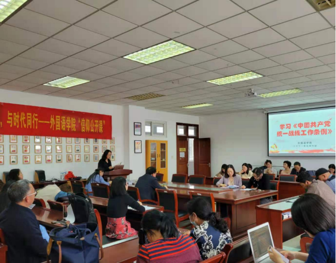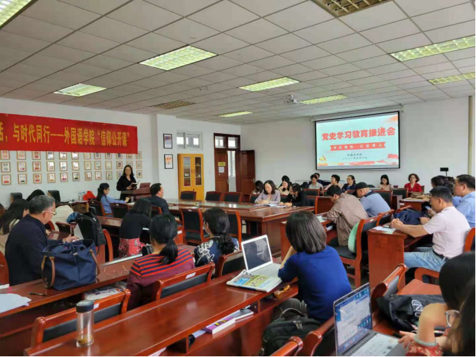 会议第三阶段,院党委书记李骏向大家通报了学院近期党史学习教育的进展,重点介绍了“多语种讲党史”、“我的党史故事”等学院特色,要求更多的青年教师、党外人士加入到党史学习教育中来。
