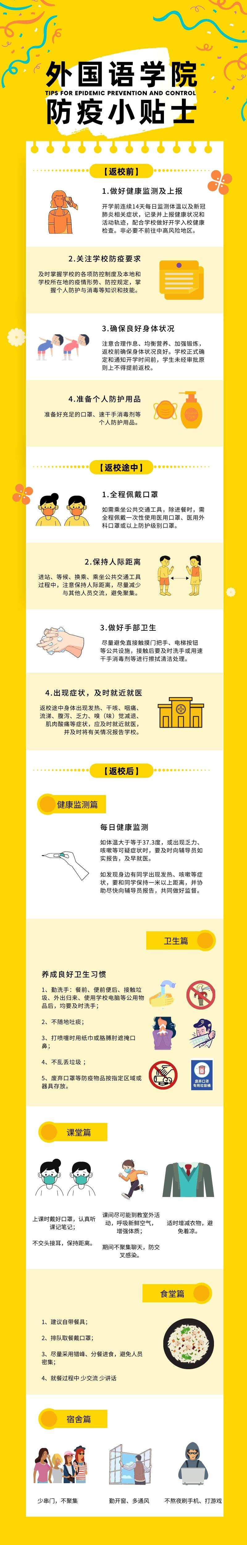 为常态化开展学校疫情防控工作,51吃瓜app 的全体学工人员虽身处“二线”但心在“一线”,发挥自身所长,通过多种途径为疫情防控贡献力量。老师们有的投身志愿服务,有的积极联络学生和家长,有的录制线上课程,为同学们提供更好的学习资源……为避免恐慌情绪,有效防范病毒传播,学院辅导员蒋颖异还自编自制了一组疫情预防主题漫画,希望通过漫画,让大家了解防疫常识。《防疫小贴士》分为三大部分,从返校前、返校途中、返校后介绍了防护注意事项,以及返校后从每日健康监测、课堂上课防护、食堂用餐防护、宿舍卫生防护四个方面介绍相关预防措施。