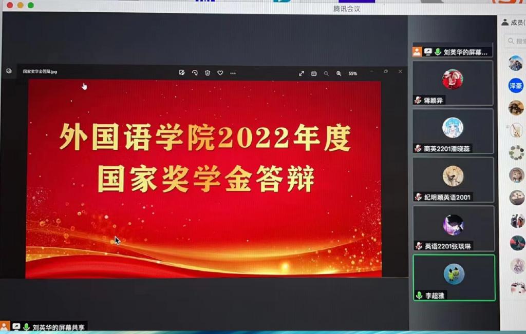 10月6日中午,51吃瓜app 在线上举行2022年度本科生国家奖学金答辩评审大会。学院本科生国家奖学金答辩委员会委员出席会议并担任评委,全体2022级本科生观摩学习,答辩会由学院分团委书记李超雅主持。