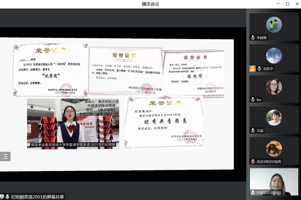 英语2001班纪明颖同学一直用“Never compromise. Not even in the face of Armageddon”的座右铭激励自己,刻苦锤炼本领,基本功非常过硬,高分通过大学英语六级和英语专业四级考试,并积极参加各类英语专业相关比赛进一步提升专业素养,在省级奖项方面硕果累累。
