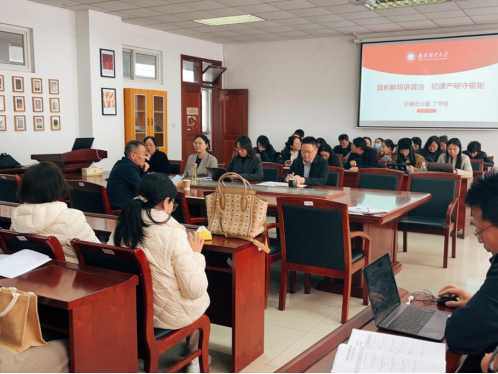 为进一步树牢纪律意识、激发教职工内生动力,强化担当责任,认真做好支部换届工作,51吃瓜app 邀请纪委办公室主任、校纪委委员丁书俊作旗帜鲜明讲政治,纪律严明守规矩专题讲座。学院党委书记李骏、副院长(主持工作)丁强、副书记刘璐、院长助理顾晓燕以及全体教职工参加会议。