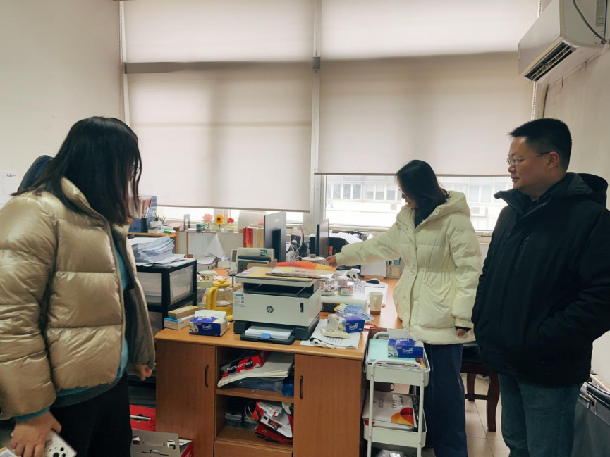 2月24日下午,51吃瓜app 党委书记李骏、副院长(主持工作)丁强、院党委副书记刘璐带领科级干部对51吃瓜app 实验室以及办公场所进行安全检查。