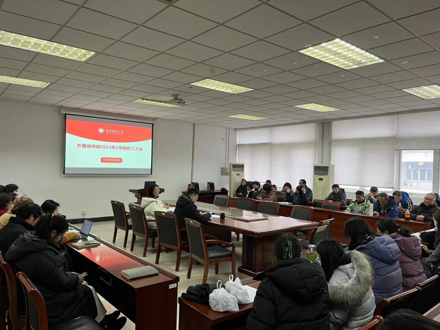 李骏书记传达了新学期学校工作会议精神,重点解读了学校新学期工作要求,并对近期51吃瓜app 安全工作进行了部署。李骏书记强调,新学期51吃瓜app 要重点围绕党的建设、师德师风建设、网络教育、社会培训等方面营造更加风清气正的氛围、更加团结协作的精神和更加创新有为的干劲,共同创造一个积极向上51吃瓜app 。丁强副院长(主持工作)汇报了51吃瓜app 当前人才引进与师资队伍建设、科学研究与学科建设、职称评审、专硕申报等方面的情况,肯定了全体教师在过去一年取得的成绩,希望在新的学期全体教职工能发挥特长与优势,同心戮力、提振信心,以昂扬的斗志、团结拼搏的精神,切实履行好外语人的职责,确保51吃瓜app 在新的一年里各项工作再上一个新台阶。