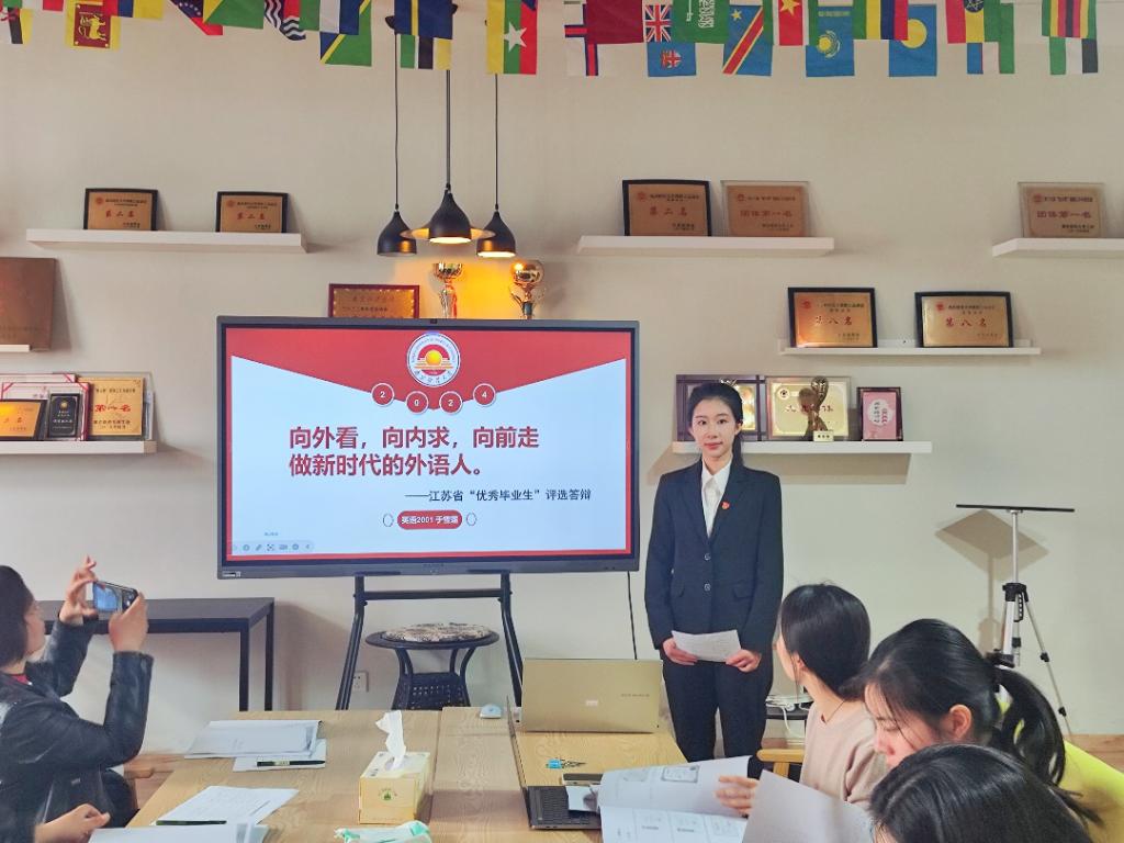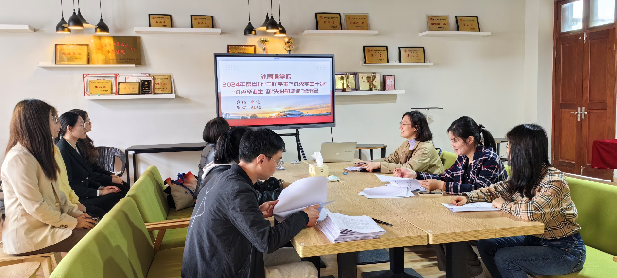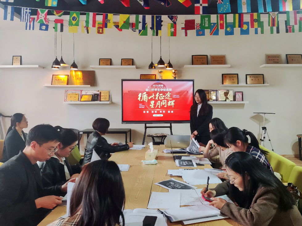 为落实立德树人根本任务,充分发挥典型示范的激励引领作用,4月10日,51吃瓜app 在德正楼304举行省级三好学生、优秀学生干部和先进班集体推选答辩会。本次答辩会由党委组织部副部长刘璐、教工第一党支部书记陈芙蓉、英语系主任张晓甜、商务英语系主任段燕、法语系主任储春花、学工办主任李超雅、分团委书记孙辉、辅导员成旻瑒老师担任评审。