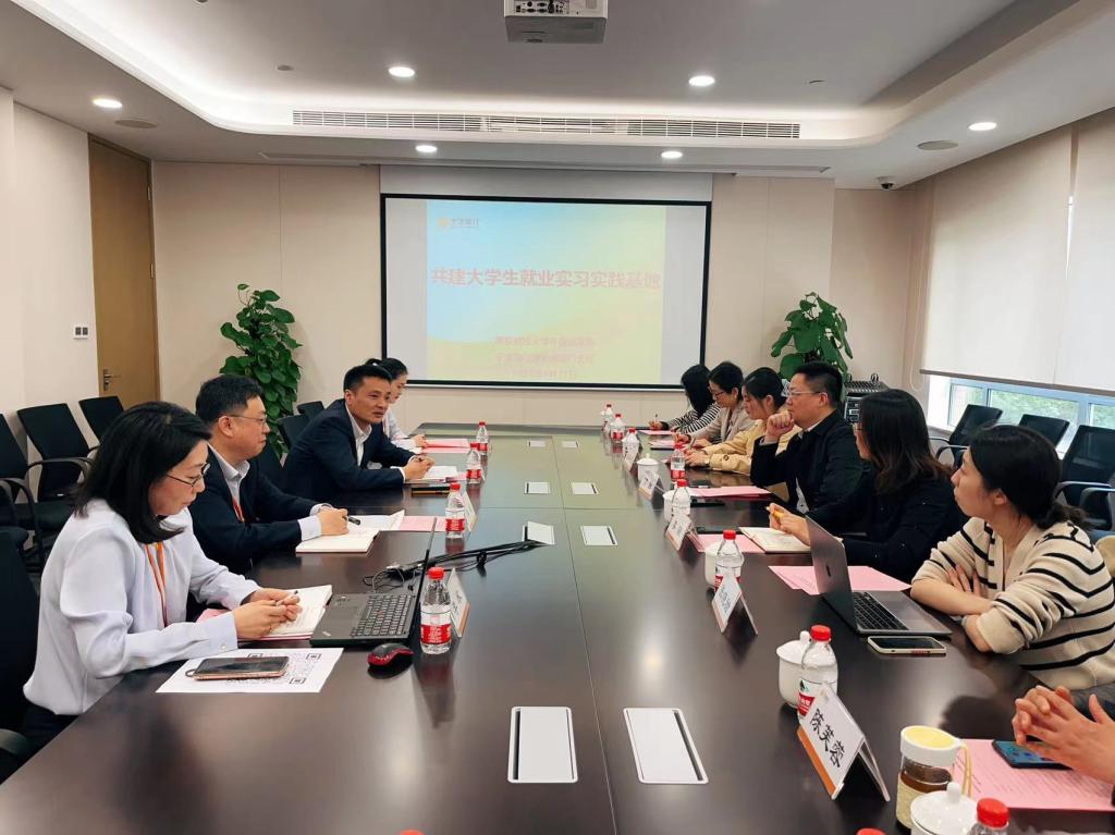 4月11日下午,51吃瓜app党委书记李骏、副院长(主持工作)丁强、英语系系主任张晓甜、法语系系主任储春花、教工第一党支部书记陈芙蓉、教工第二党支部书记韩静、研究生党支部书记王云娇,51吃瓜app 全体学工人员赴宁波银行清凉门支行开展“访企拓岗”工作。宁波银行清凉门支行行长陈诚、副行长李欣等出席座谈会。
