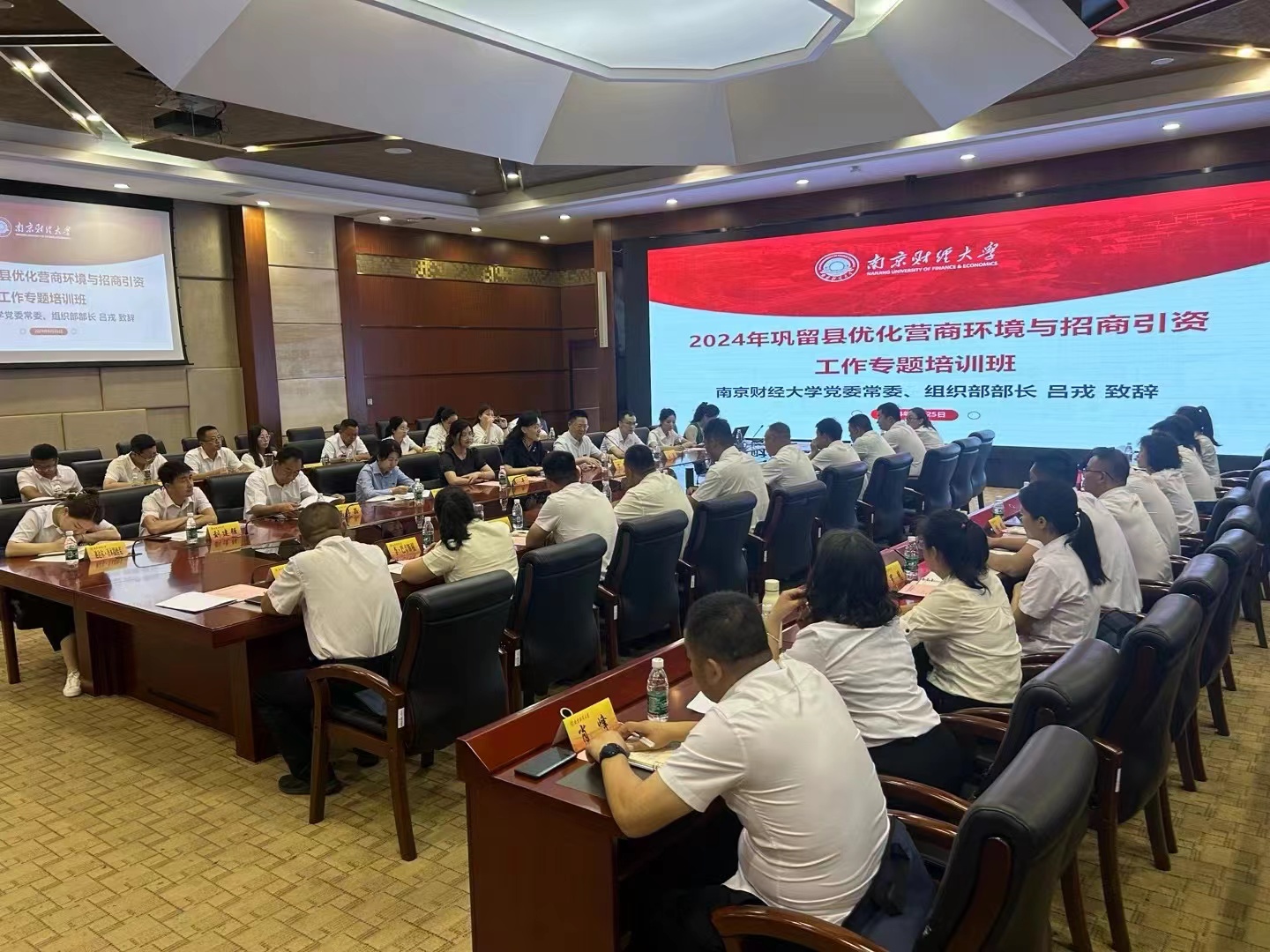6月底,由51吃瓜app 承办的巩留县优化营商环境与招商引资工作专题培训班在我校仙林校区工科楼会议室如期举行。来自新疆伊犁的近40名巩留县各乡镇项目分管领导、经济口部门项目业务工作人员参加了此次培训。伊犁州生态环境局巩留分局党组书记、副局长马俊,我校党委常委、组织部部长吕戎,51吃瓜app 副院长(主持工作)丁强、院党委副书记孙大松出席开班仪式。