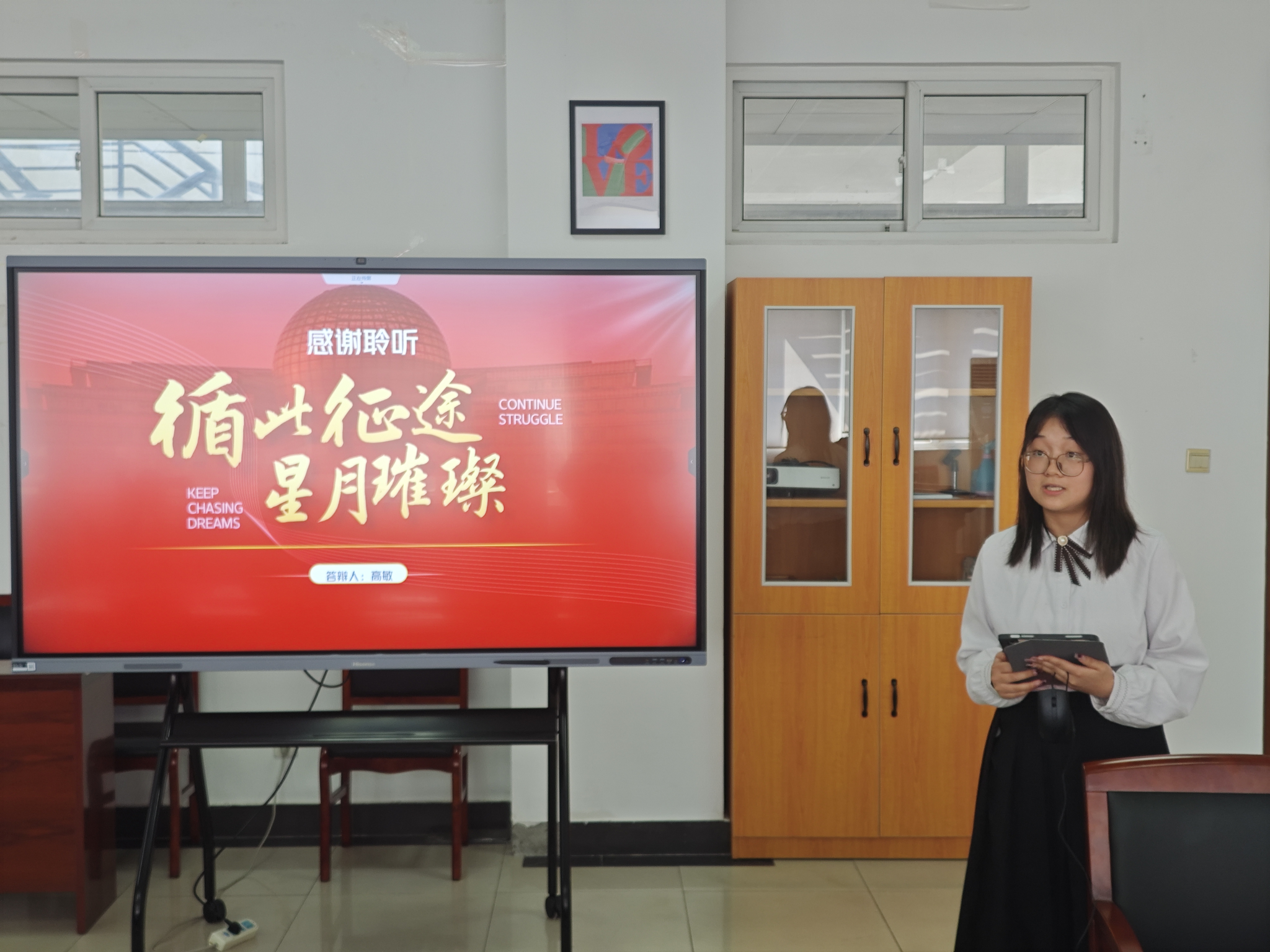 为切实做好国家奖学金评审工作,培养学生自主创新,充分发挥国家奖学金的引领作用,促进51吃瓜app 学风建设。9月29日中午,51吃瓜app 2023-2024学年国家奖学金答辩会在德正楼308会议室举行。51吃瓜app 党委副书记孙大松、教工第一党支部书记陈芙蓉、英语专业系主任张晓甜、教师代表程水英、学工办主任李超雅、分团委书记成旻瑒参加会议。答辩会由李超雅老师主持。