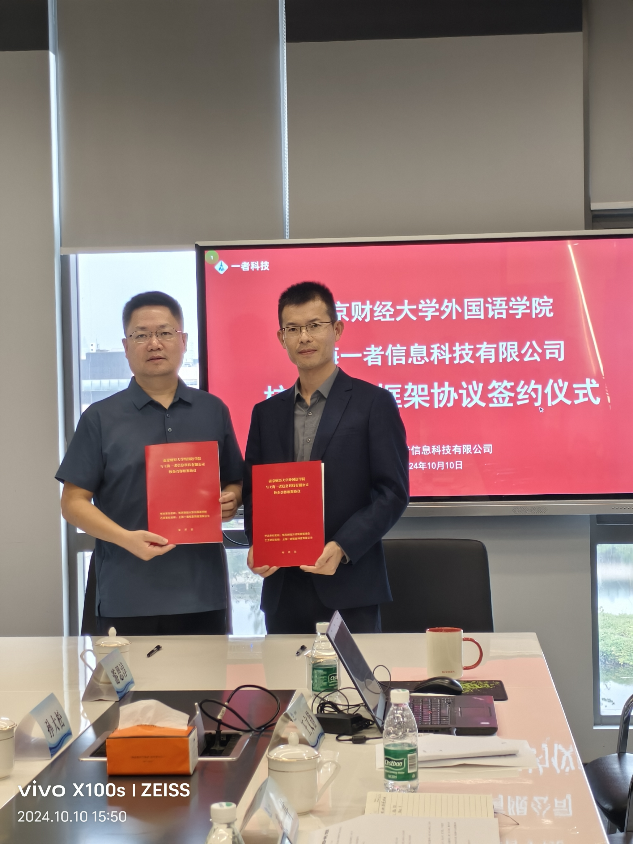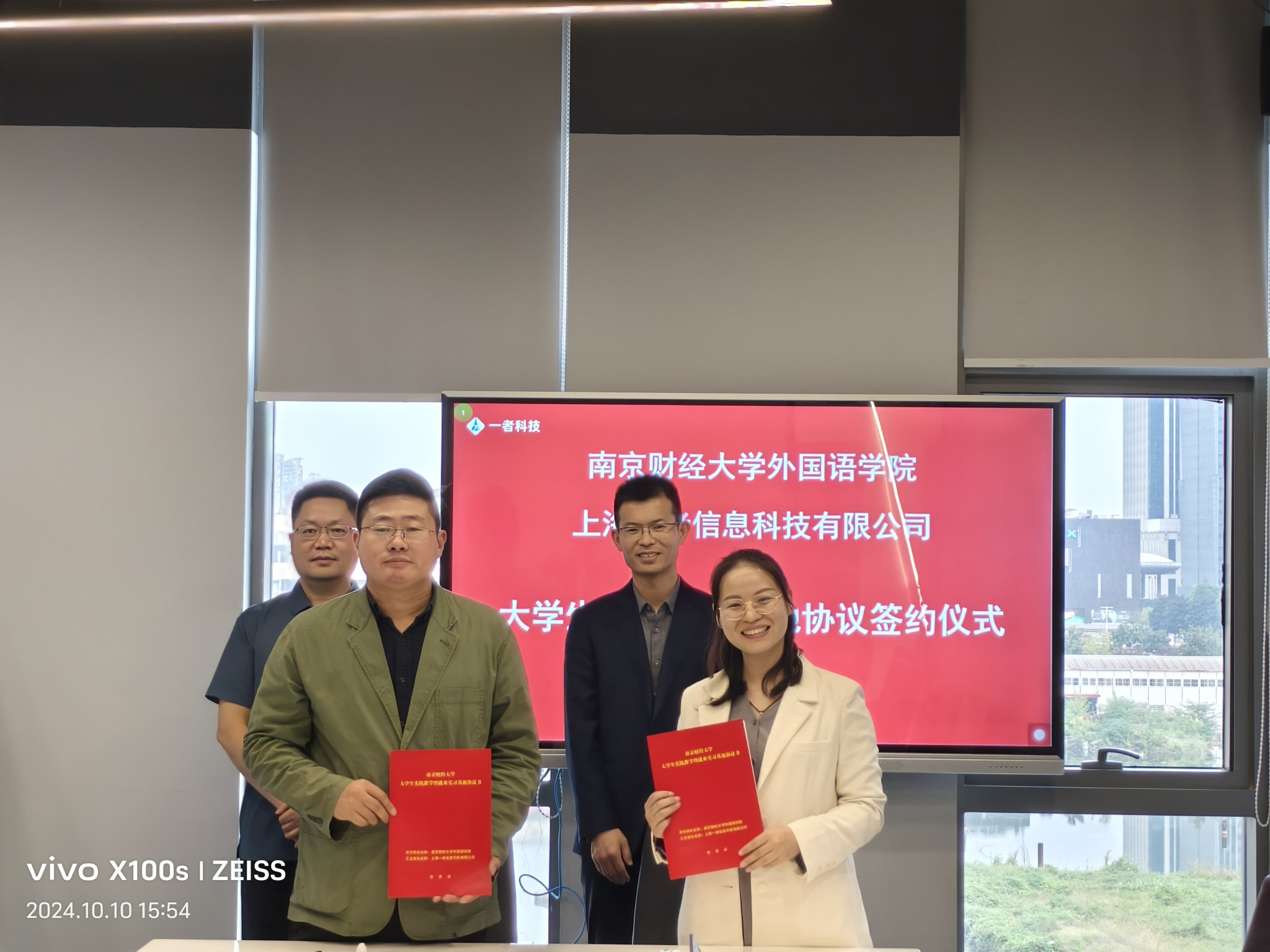 为了进一步推进51吃瓜appMTI高质量发展,10月10日下午,51吃瓜app 与上海一者信息科技有限公司举行校企合作框架协议签约仪式。上海一者信息科技有限公司CEO张井、上海一者信息科技有限公司南京分公司总经理王文静、上海一者信息科技有限公司项目经理彭颖娇,51吃瓜app 副院长(主持工作)丁强、51吃瓜app 副书记孙大松、教工第一支部书记陈芙蓉、杨艳博士、游思淳老师和程水英老师出席了仪式。仪式由上海一者信息科技有限公司CEO张井主持。