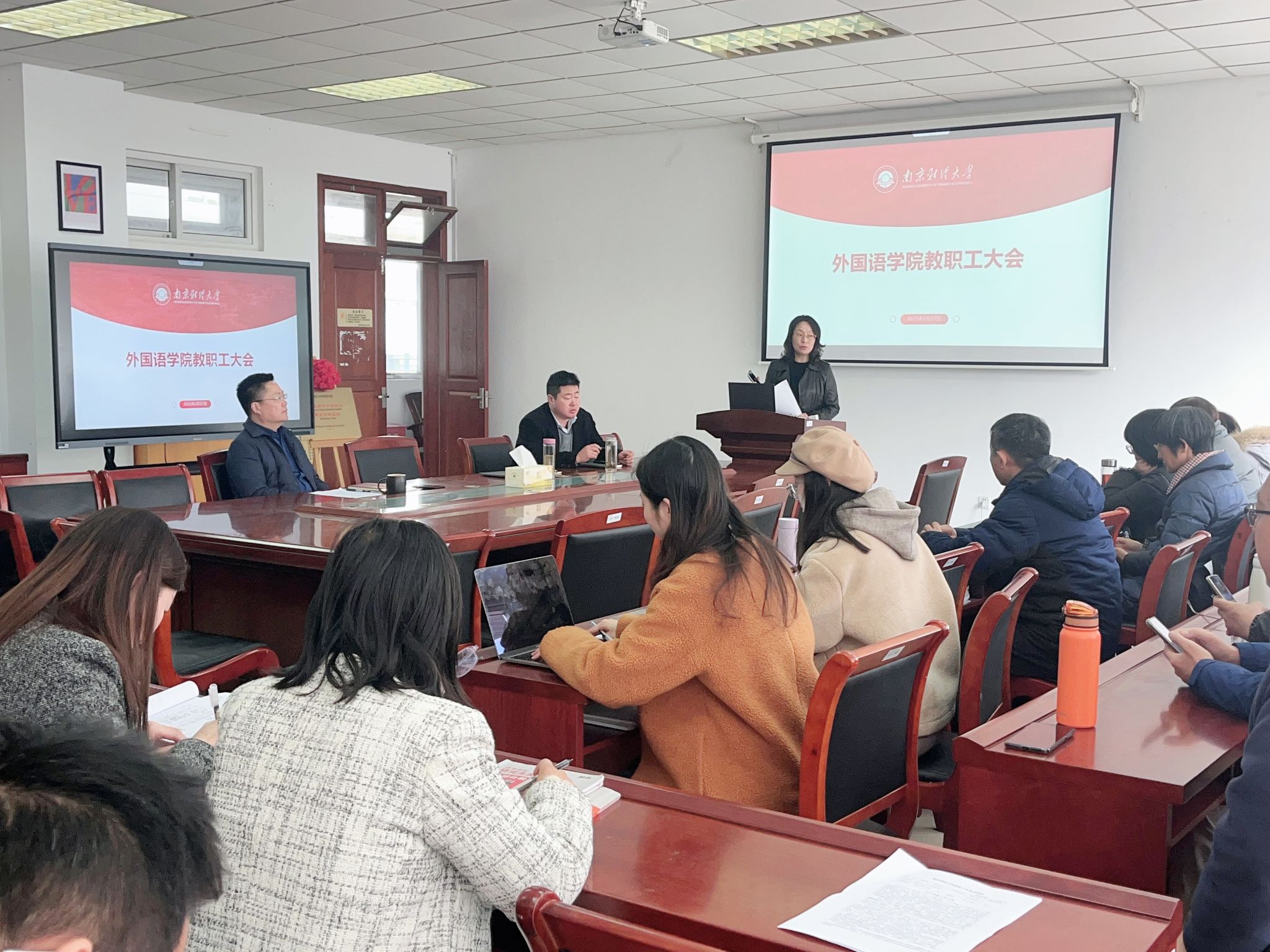 会上,院党委书记李骏向全体教职工传达了学校党委中心组扩大会议的相关精神,重点传达了“有组织科研”特别是科技成果转化相关要求和会议精神。她要求全体教职工凝聚共识,聚焦专业,不断改革创新,围绕学校重点工作奋发作为。