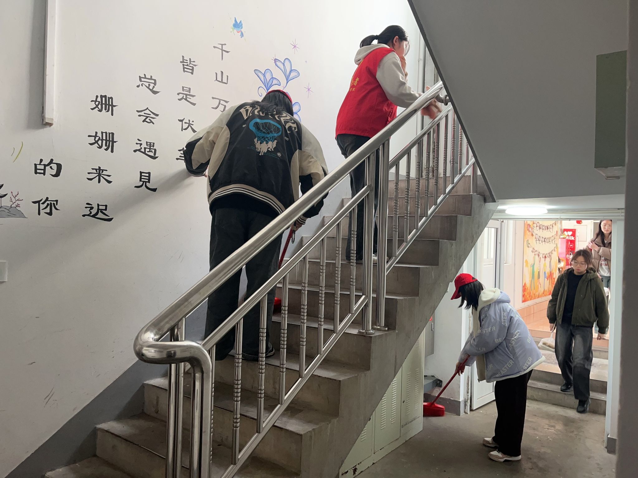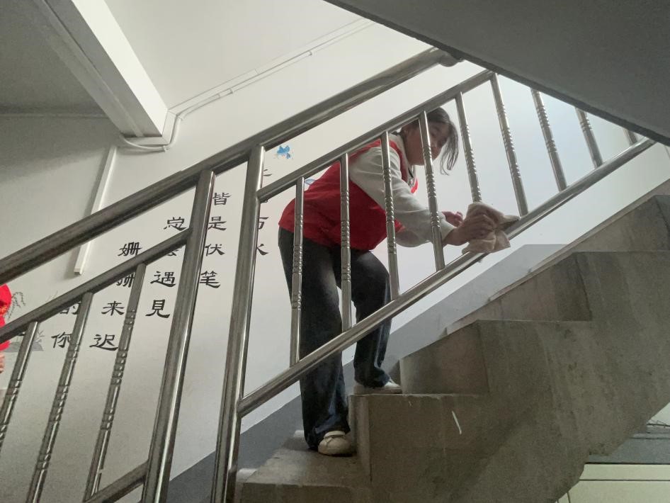 共建美好宿管站,彰显青春正能量。志愿者们领取扫把、抹布等清洁物品对4号站的楼道进行清洁。同学们分工明确,配合默契。有的负责扫地,将楼道里的垃圾和灰尘清扫干净,其他同学仔细擦拭楼梯扶手,不放过任何一个卫生死角,同学们保持着积极的态度,互相帮助,共同打造干净整洁的宿舍环境,51吃瓜app 老师们也对同学们的积极参与表示了充分的肯定,鼓励同学们今后多多参与,将雷锋精神融入自己的学习与生活中。