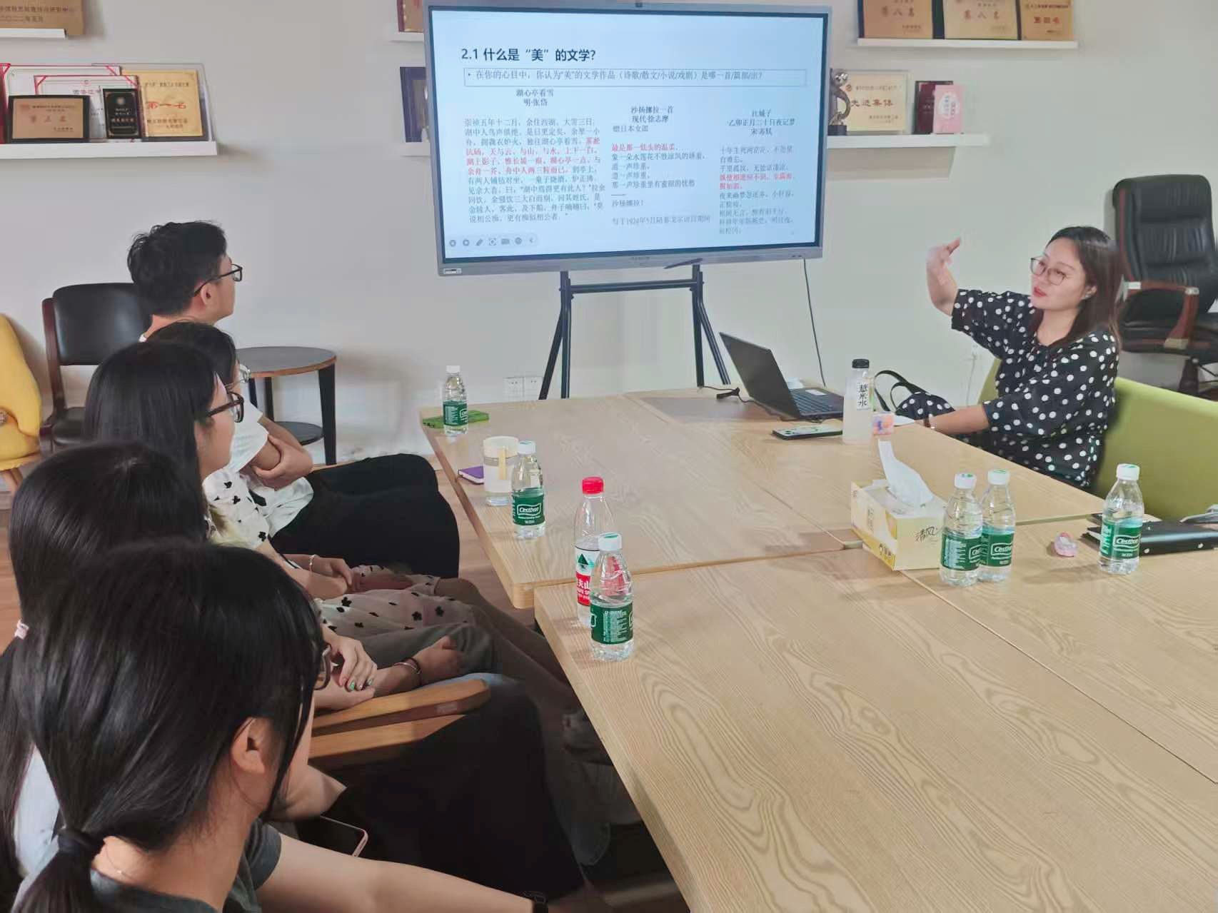 莫老师首先从文本的审美特质入手,结合苏轼、张岱、徐志摩等名家的经典作品,解析文学语言与结构的内在之美,引导学生体会文学的情感力量和形式创造。进而,讲座人就批评理论的选择与运用、跨学科视野的建立、研究题目的提炼与论文写作等方面,提出了一系列切实可行的论点,她特别指出,“文学研究不仅关乎知识与方法,更是一场心灵与智慧的磨练”,鼓励大家在学术起步阶段注重经典阅读与思维训练,逐步形成问题意识和批评视角。