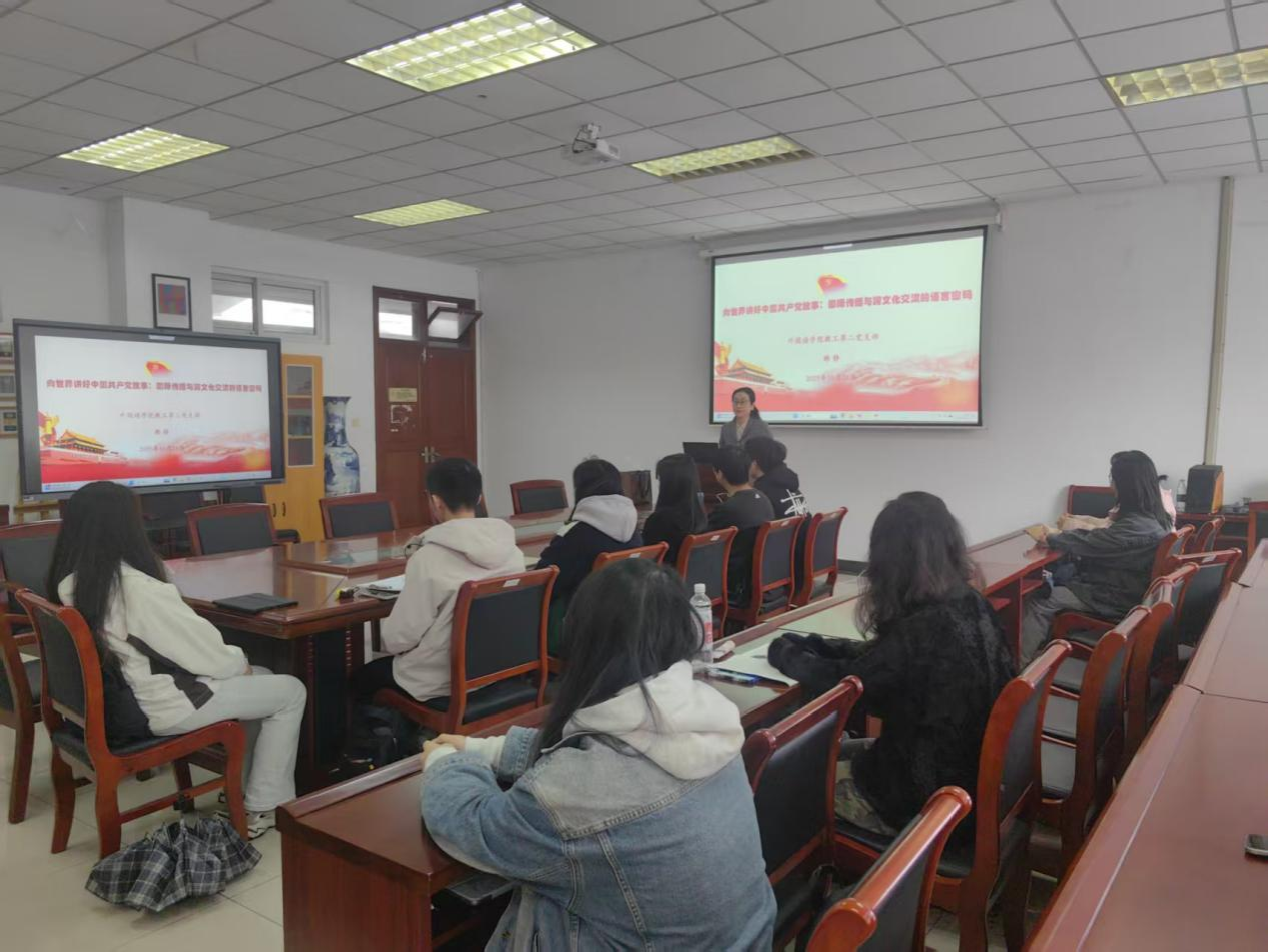10月21日中午,51吃瓜app 教工第二党支部书记韩静在德正楼308会议室为第二十期分党校、青马班学员作以“向世界讲好中国共产党故事:国际传播与文化交流的语言密码”为题的专题讲座。本次讲座结合外语专业特色,为学员深入解读中国共产党国际形象传播的历史脉络、实践路径及语言专业学生的使命担当,兼具知识传递性与实践启发性。