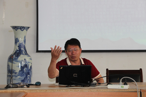 张高远教授对模糊限制语做了细致的介绍,首先以Hedge一词引出“模糊限制语”,并指出Hedge与“模糊限制语”是两个不尽对应的术语。并对“模糊限制语”的定义、功能以及分类进行了详细的介绍与解读,随后对英汉范畴变动语的语言表现形式做了详尽的介绍。随后,张教授与在场的师生进行了交流和探讨。