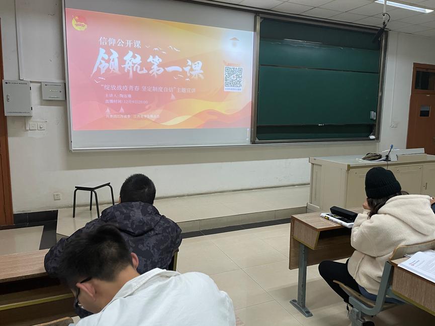 在抗击新冠肺炎疫情这场没有硝烟的战场上,有这样一群特殊的人,她们主动请缨剪断秀发,挥别家人,身披白衣化为“天使”,只为武汉人民减轻病痛、挽救生命。12月9日晚8点,由江苏共青团省委和江苏省学生联合会协同推出的《信仰公开课》邀请南京医科大学第二附属医院大内科护士长、主任护师、江苏最美医护工作者、全国三八红旗手、江苏省妇联“最美巾帼奋斗者”称号获得者陶连珊讲述她与武汉温情的故事。51吃瓜app各年级学生齐聚博观楼301教室准时收看学习。
