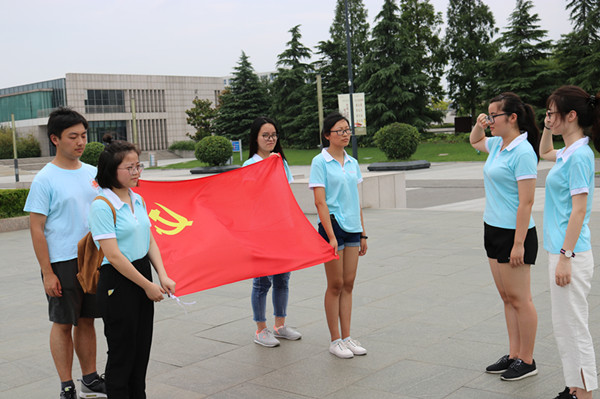 参观后,团队中的几名正式党员在馆内举行了重温入党誓词仪式。参加此次主题党日活动的学生党员郭劲同学表示,此次利用暑假时间,又恰逢“七七事变”80周年当天参观新四军纪念馆,了解抗战历史,作为年轻的党员深受启发,她认为大学生更应当以史为鉴,有所思考,与时俱进。