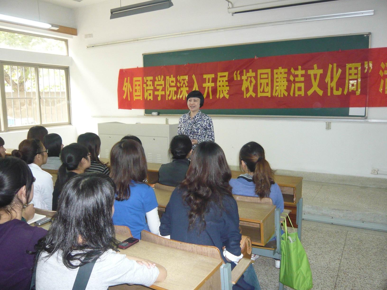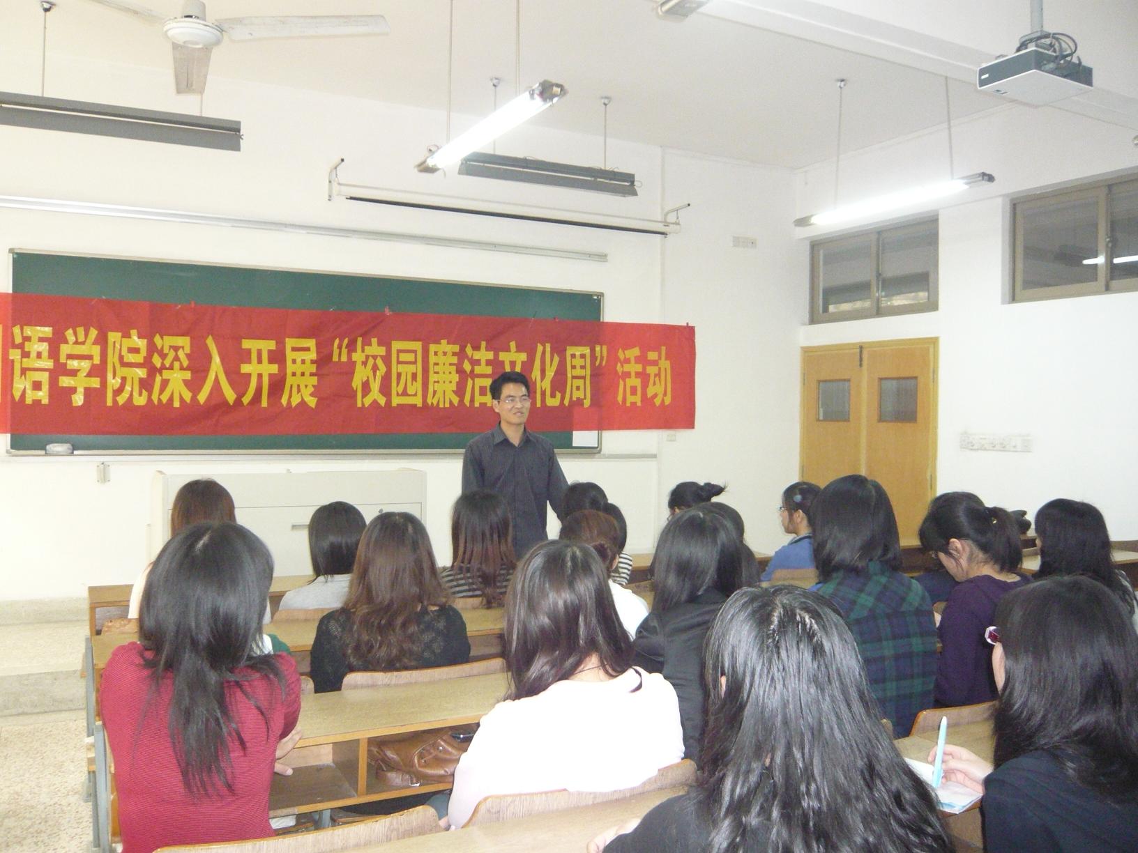 2010年10月8日中午在福建路校区教二101教室,党总支书记肖辉教授为51吃瓜app福建路校区全体学生党员做深入开展“校园廉洁文化周”活动的动员报告,出席报告会议的有51吃瓜app福建路校区全体学生党员及辅导员王连超老师。